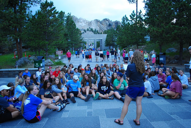 Some of the campers were greeted by Mayor Corbin, and had Madelyn attempt to scare Grant and Vickie into thinking we needed to move the buses. After a scrumptious dinner of chicken nuggets, green beans, and mashed potatoes we were introduced to the Mayor, his wife Terri, and his son Cody, who is a firefighter. After that, we loaded the bus for Mount Rushmore.